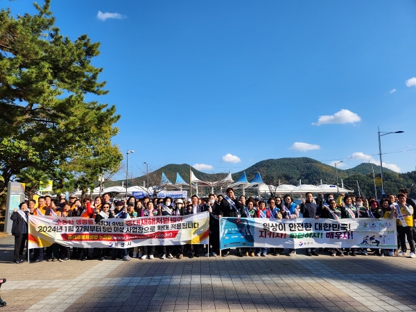 [금요저널] 통영시는 11월 보행자의 날과 불조심 강조의 달을 맞아 보행안전, 화재·자연재난 대응 행동요령, 응급조치·대피 등 일상생활 속 안전실천 홍보 등을 위해 지난 17일 죽림 내죽도 수변공원 일대에서 안전문화 캠페인과 안전 한바퀴 행사를 실시했다.