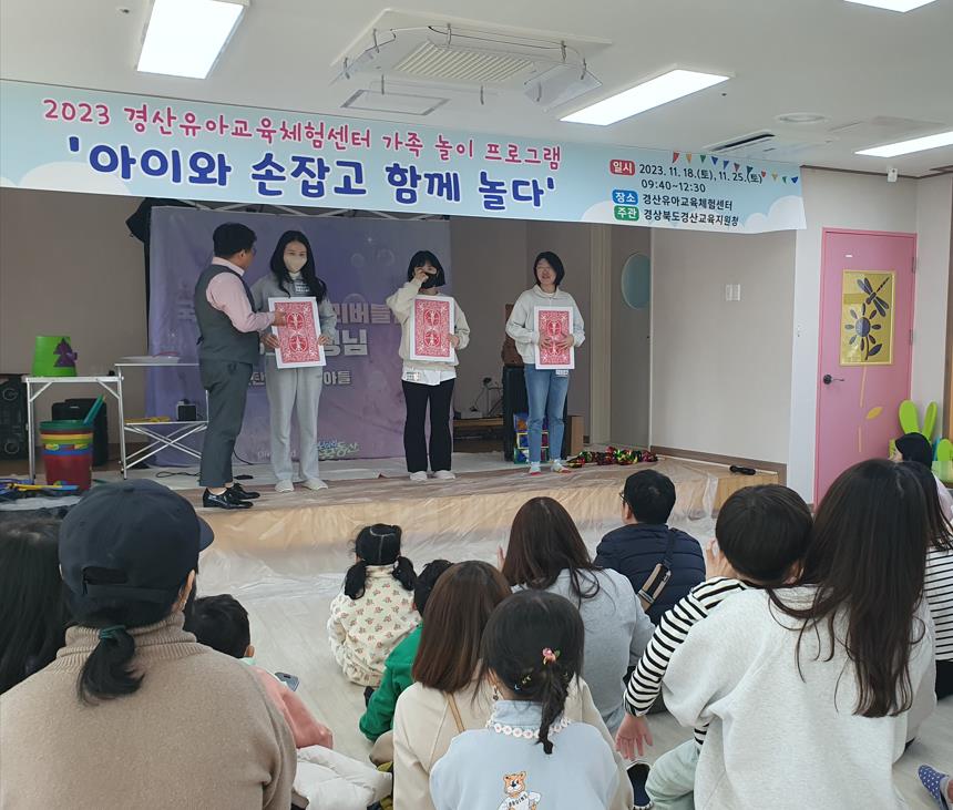 □ 경산교육지원청(교육장 이양균)은 11. 18.(토) 경산유아교육체험센터에서 관내 유치원과 어린이집의 유아 및 학부모 50명 대상으로 특별한 가족놀이 프로그램 행사를 개최했다.