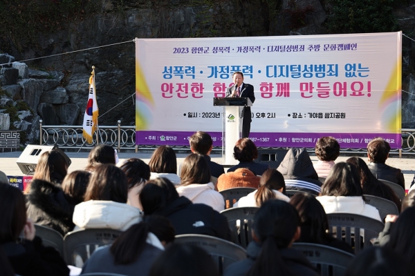 조근제 함안군수는 “성폭력·가정폭력은 더 이상 개인의 문제가 아닌 우리 사회 전체의 문제”며 “이번 행사를 통해, 성폭력·가정폭력·디지털 성범죄를 예방하고 아동과 여성이 살기 좋은 안전한 함안을 만드는데 최선을 다하겠다”고 말했다.