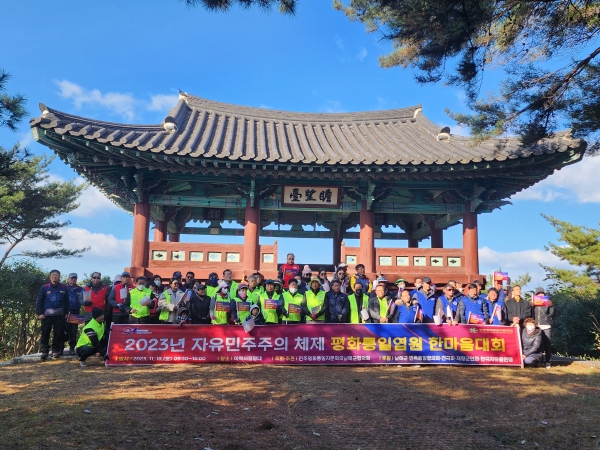 [금요저널] 민주평화통일자문회의 남해군협의회는 지난 18일 오전 이락사 첨망대에서 ‘2023년 자유민주주의 체제 평화통일 염원 한마음대회’를 개최했다.