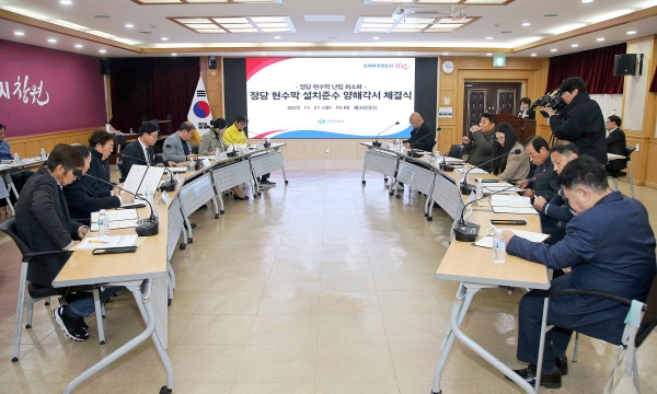 [금요저널] 창원특례시는 21일 시청 제3 회의실에서 지역 내 각 정당 대표들이 참석한 가운데 거리에 무분별하게 게시되어 민원이 지속해서 발생하고 있는 정당 현수막 난립 문제 해결을 위한 정당 현수막 설치준수 양해각서 체결식을 개최했다고 밝혔다.