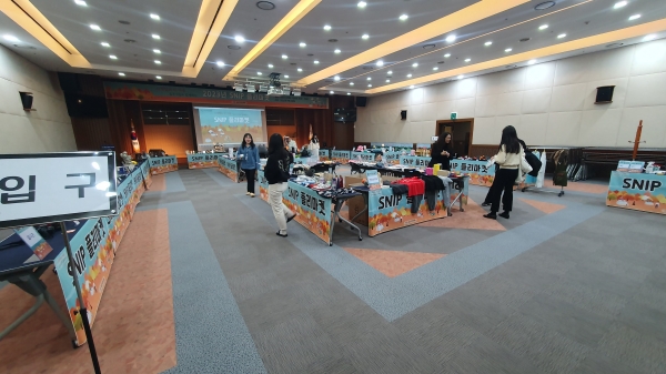 [금요저널] 성남산업진흥원이 기업과 함께하는 나눔·상생의 플리마켓 운영을 통해 자원 재순환과 나눔을 실천하고자 11.20 ~ 11.21, 2일간 킨스타워 층 대강당에서 ‘사계절과 이 가을, 입주기업과 함께하는 SNIP 플리마켓’ 행사를 진행했다.