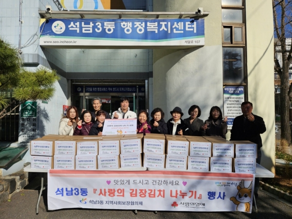 김종권 석남3동 지역사회보장협의체 위원장은 “추운 겨울을 앞두고 여러 가지 사정으로 김장을 마련하지 못한 이웃들에게 김치를 나눌 수 있어 기쁘고 겨울철 든든한 양식이 되길 바란다. 앞으로도 어려운 이웃들에게 따뜻한 온기가 전해질 수 있도록 지역주민의 복지에 더 많은 관심을 기울이겠다”고 말했다.