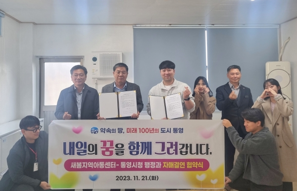 [금요저널] 지난 21일 통영시 행정과와 사회복지시설 새봄지역아동센터는 따뜻한 정과 나눔 문화 확산을 위한 자매결연 협약식을 가졌다.