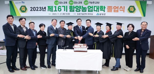 [금요저널] 함양군은 11월 21일 농업기술센터 회의실에서 ‘2023년도 제16기 함양농업대학 졸업식’을 가졌다.