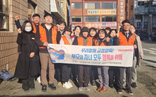 [금요저널] 밀양시는 22일 내이동 버스터미널 일원에서 밀양시아동위원협의회와 함께 아동학대예방 주간을 맞아 ‘우리함께 긍정양육 부모와 자녀 모두 행복을 위해’라는 슬로건으로 아동학대 예방 캠페인을 진행했다.