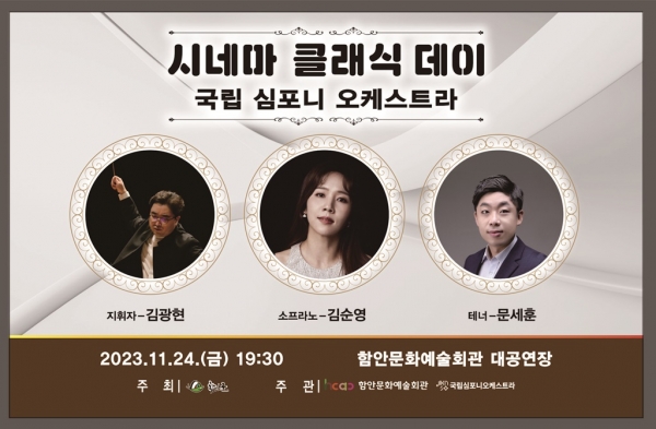 [금요저널] 함안군은 오는 24일 오후 7시 30분 함안문화예술회관 대공연장에서 국립심포니오케스트라 ‘시네마 클래식 데이’ 공연을 개최한다.