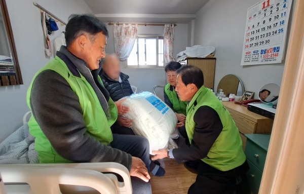 정기회의를 마친 후에는 2023년 따뜻한 겨울나기 지원사업의 일환으로 생계가 어려운 15가구의 취약계층에 이불을 전달했다.