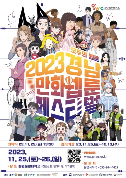 [금요저널] 경상남도는 오는 11월 25일부터 26일까지 2일간 창원 문성대학교 컨벤션홀, 갤러리 융, 야외 일대에서 ‘2023 경남만화·웹툰페스티벌’ 행사를 개최한다고 밝혔다.