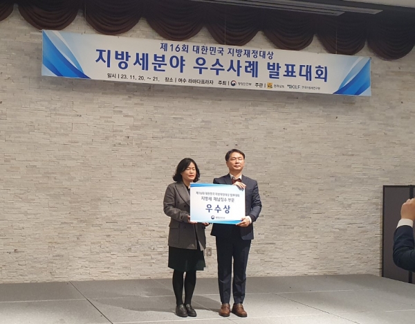 [금요저널] 통영시는‘제16회 대한민국 지방재정대상 지방세 분야 우수사례 발표대회’에서 세무과 김석근 징수팀장이 우수상을 수상했다고 밝혔다.