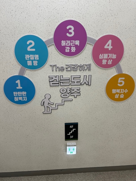 [금요저널] 양주시 보건소는 경기섬유종합지원센터에 친화적인 건강환경을 조성하고 엘리베이터보다 계단 이용을 독려하고자 ‘워킹365 더 건강하게 걷는 계단’을 만들었다고 23일 밝혔다.