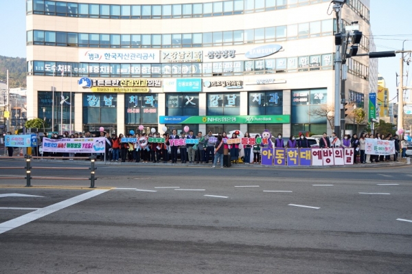 [금요저널] 통영시는 아동학대 예방 주간을 맞이해 지난 22일 무전사거리와 광도면 죽림초등학교 정문 등지에서 두 차례에 걸쳐‘아동학대 예방의 날 아동학대예방 홍보 캠페인’을 실시했다.