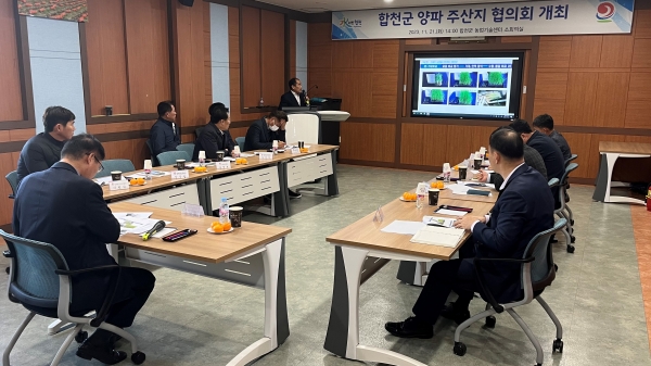 [금요저널] 합천군은 지난 21일 합천군 농업기술센터 2층 회의실에서 협의체 위원장인 김배성 합천군농업기술센터소장을 비롯한 경남양파연구소장, 관내농협장, 양파생산자 대표, 외부 전문가 등 8명이 참석해 ‘2023년 양파 주산지 발전 협의회’를 개최했다.