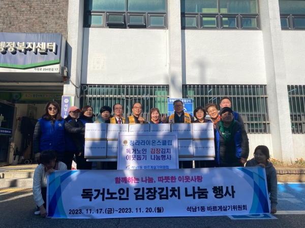 [금요저널] 인천 서구 석남1동 바르게살기위원회는 이달 17일부터 20일까지 다가오는 겨울 한파를 대비해 이웃에 따뜻한 온기를 전하고자 관내 저소득 가정 및 독거노인들을 위한 김장김치 나눔 행사를 가졌다.