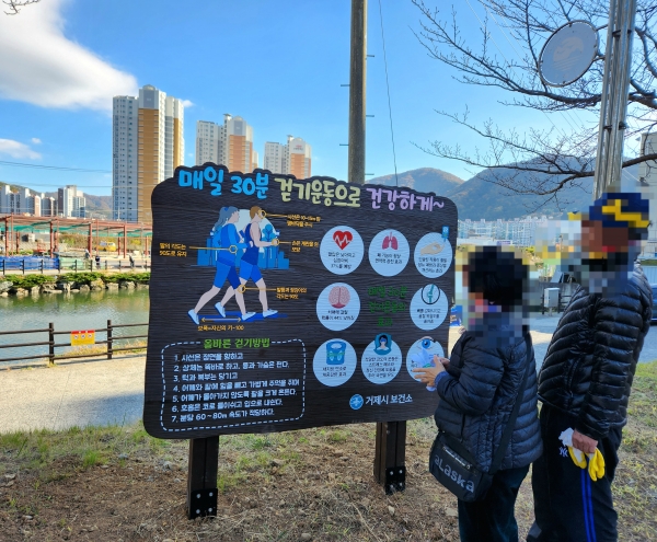 이번에 설치한 올바른 걷기 운동 표지판은 ‘2023년 사계절 걷기 챌린지’를 통해 시민들이 추천한 걷기 좋은 길과 면·동에서 추천한 왕복 2~3km 이내의 걷기 좋은 길 중 유동 인구와 안전 등을 고려해 연초천 산책로 장승포 해안일주도로에 설치했으며 매년 추가 설치할 계획이다.