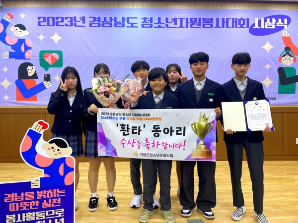 [금요저널] 거창군은 지난 22일 경남연구원 대회의실에서 열린 2023년 경상남도 청소년자원봉사대회에서 청소년문화의집 소속 동아리 ‘환타’가 우수활동 분야 동아리 부문 여성가족부 장관상을 수상했다고 밝혔다.
