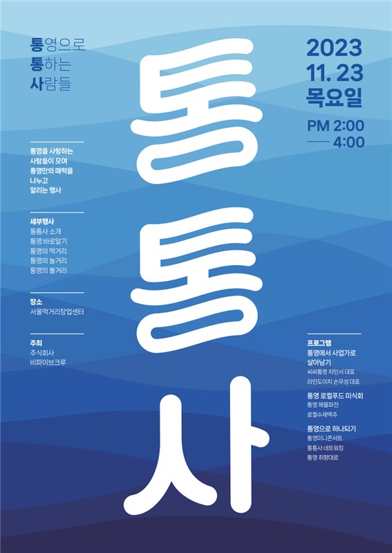‘통통사’는 통영으로 통하는 사람들을 일컫는 말로 통영을 사랑하는 다양한 분야의 사람들이 자발적으로 모여 통영이 아닌 서울에서 열린 행사로 그 의미가 깊다.
