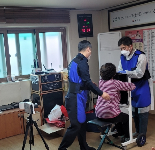 ‘찾아가는 결핵검진’은 지역 내 노인복지기관, 요양시설 등에 찾아가 거동이 불편한 65세 이상 어른신을 대상으로 결핵을 검진하는 서비스로 이번 검진은 대상자 설문조사 및 증상확인, 흉부X선 검사, 객담검사 순으로 진행됐다.