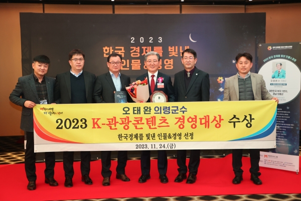 군에 따르면 오태완 군수는 24일 서울 더플라자호텔에서 열린 '2023 한국 경제를 빛낸 인물&경영' 시상식에서 ‘K-관광콘텐츠 경영’ 부문 대상을 받았다고 밝혔다.