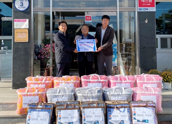 이날 허상문 대표는 “날씨가 점점 쌀쌀해지면서 관내 저소득계층이 겨울나기에 걱정이 클 것으로 생각되어 조금이나마 걱정을 덜어주는 마음에서 이불과 전기매트를 기탁하게 됐다 이번 기탁이 소외된 이웃에게 따뜻한 선물이 되길 바란다”고 말했다.
