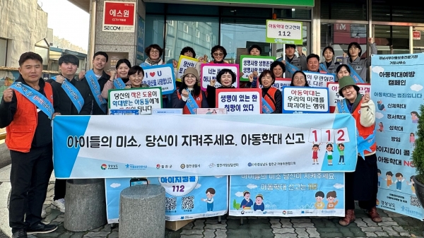 이날 캠페인은 아동학대 근절을 위해 참여한 합천군, 합천경찰서 경남서부아동보호전문기관 거창사무소, 합천군아동위원협의회 등 유관기관 합동으로 진행됐으며 아동학대 예방 캠페인 및 관련 홍보물을 배포했다.
