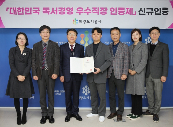 [금요저널] 의왕도시공사는 지난 24일 문화체육관광부가 주최하는 ‘독서경영 우수직장 인증’을 신규로 획득했다고 밝혔다.