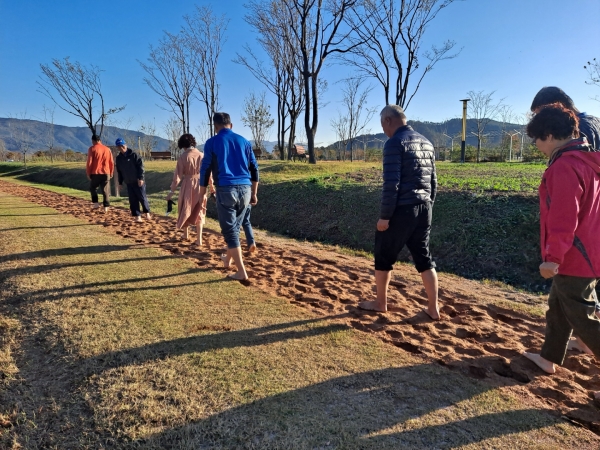양산시, 황산공원 황토 맨발산책로 체험존 운영