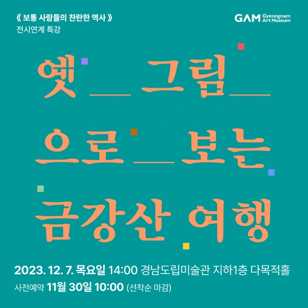 [금요저널] 경남도립미술관은 오는 12월 7일 오후 2시 다목적홀에서 옛 그림으로 보는 금강산 특강을 개최한다고 밝혔다.