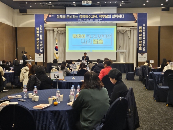 [금요저널] 경북교육청은 지난 27일부터 28일까지 1박 2일간 더케이호텔 경주에서 특수 교육 대상 학생 학부모 100여명을 대상으로 ‘2023 장애 학생 자립생활 역량 강화를 위한 학부모 연수’를 실시했다.