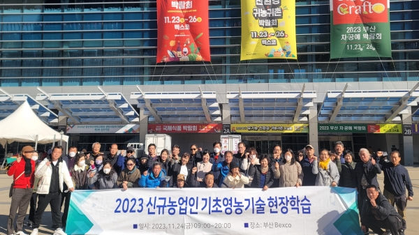 [금요저널] 합천군은 지난 24일 합천군 신규농업인 40명을 대상으로 부산 백스코에서 열린 ‘2023년 제13회 부산 유기농·친화경·귀농귀촌 박람회’에서 현장 교육을 실시했다.