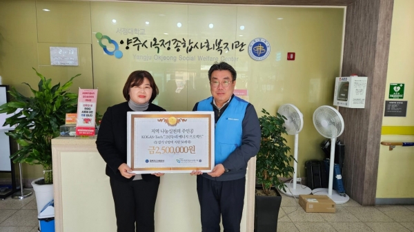 양주시옥정종합사회복지관은 한국가스기술공사 서울지사 양주사업소에서 기탁한 후원금 250만원으로 각 가정의 난방비를 지원할 계획으로 11월 말 양주 지역 내 유관기관과 협업을 통해 저소득 취약계층 가정에 지원될 예정이다.