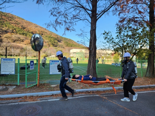이번 훈련은 소화 공정에서 발생한 바이오가스의 누출로 인한 질식사고와 폭발·화재 상황을 가정해 실시했으며 하수운영과 전 직원이 참여해 유사시의 임무 숙지와 신속한 상황 전파를 통한 인적·물적 피해 최소화를 목적으로 진행됐다.