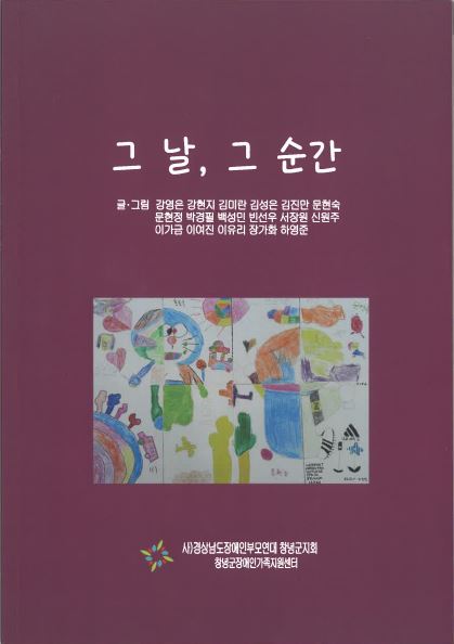‘그날, 그 순간’은 온전한 하루의 주인으로 살아가기 위한 창녕군의 발달장애인 자조 모임인 ‘피플 퍼스트 주말모험’ 팀원들이 본인들의 이야기를 직접 그림과 글로 표현한 책이다.