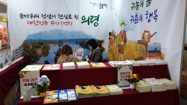 [금요저널] 의령군은 23일부터 26일까지 부산 벡스코에서 열린 유기농·친환경 귀농귀촌 박람회를 마지막으로 올해 찾아가는 귀농귀촌 홍보·상담부스 운영을 모두 종료했다고 밝혔다.
