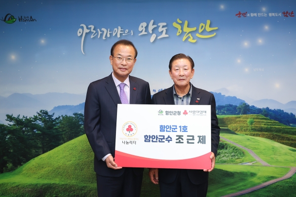 [금요저널] 함안군은 29일 조근제 함안군수가 지역 내 나눔문화 확산과 지역복지 증진을 위해 ‘함안 1호 나눔리더’에 가입했다고 밝혔다.