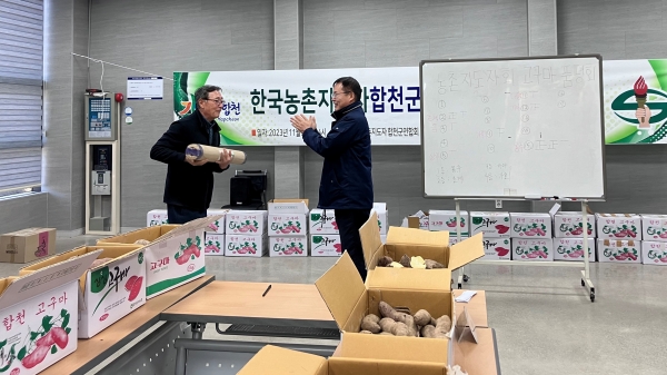 [금요저널] 합천군은 지난 28일 농촌지도자 합천군연합회 회원 등 40여명이 참석한 가운데 적중면 동부농협 농산물산지 유통센터에서 고구마 품평회를 개최했다.