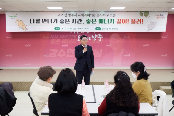 강수현 시장은 “이번 워크숍이 종사자 여러분들의 지친 몸과 마음을 회복할 수 있는 자리가 될 수 있기를 바란다”며 “앞으로도 양주시는 종사자의 처우개선에 대한 사항을 더욱 체계적으로 논의해 종사자분들이 자부심을 품고 일할 수 있는 환경을 조성하겠다”고 전했다.