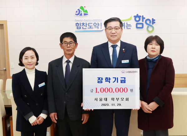 마지막으로 지난 29일 오후 서울대 학부모회도 함양군장학회에 장학금 100만원을 기탁하며 “그동안 함양군장학회로부터 받은 지원에 감사드리며 지역에서 받은 사랑에 보답하기 위해 이번에 장학금을 기탁하게 됐다”고 전했다.