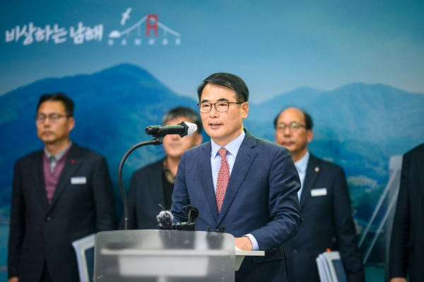 [금요저널] 장충남 남해군수는 30일 기자회견을 열고 민선 8기 출범 후 지난 1년 6개월 여 동안 달성한 성과와 향후 군정 운영 방향을 밝혔다.