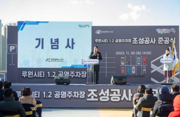 이날 준공식에는 강범석 서구청장을 비롯해 시·구의회 의원, 지역 주민이 참석해 루원시티 공영주차장 조성사업의 준공을 축하했다.
