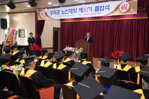유천호 강화군수는 “오늘의 졸업식까지 열정으로 배움에 임해주신 노인대학 졸업생 여러분께 축하의 말씀을 드린다”며 “강화군은 앞으로도 노인대학 활성화 및 어르신들이 활기차고 건강한 노후를 보낼 수 있도록 지원에 최선을 다하겠다”고 말했다.