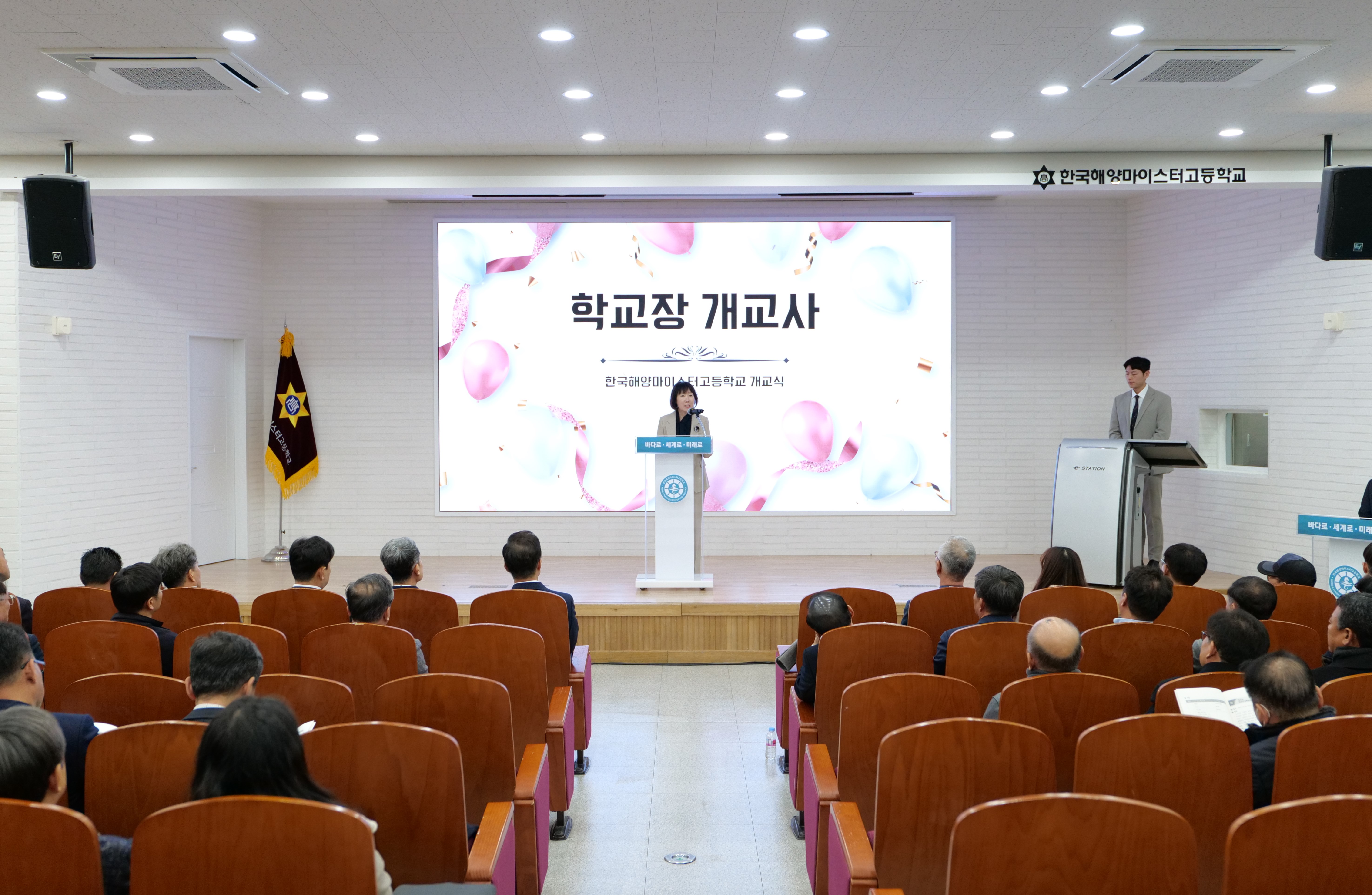 경북 포항시에 위치한 한국해양마이스터고등학교(교장 김미향)는 ‘글로벌 해양 강국을 이끌어가는 스마트 해양산업 영 마이스터 양성’을 목표로 11월 30일(목) 오후, 개교식을 가졌다.