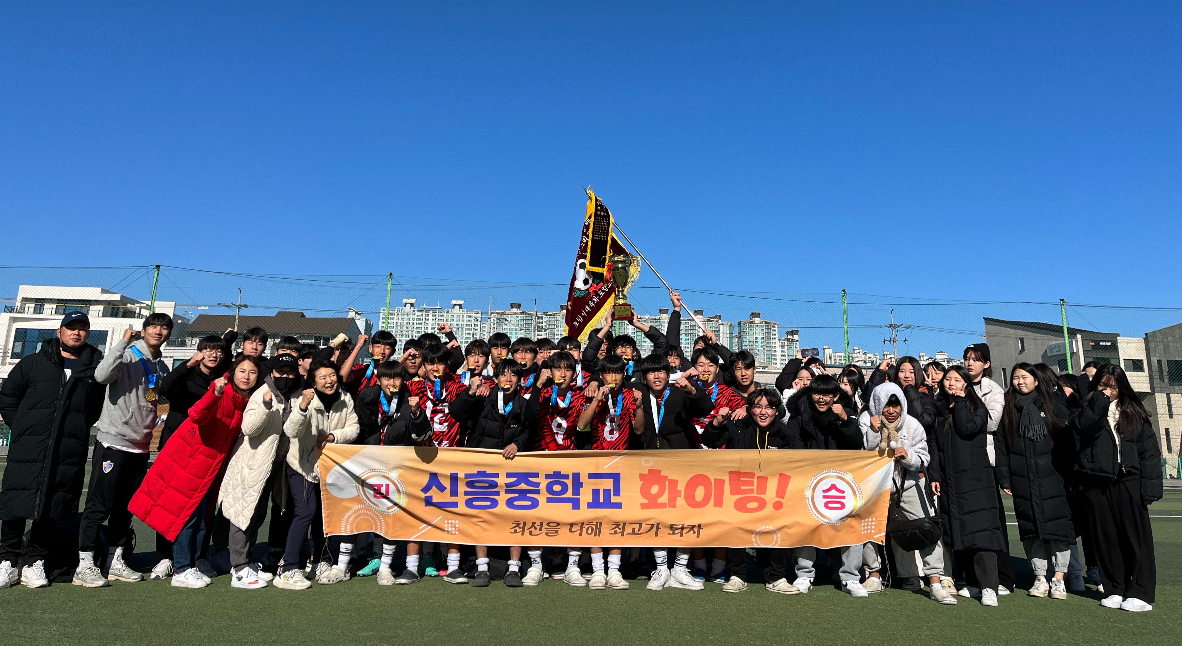 □ 신흥중학교(교장 송택경)는 2023 포항시장기 및 교육장배 초중고 챔피언스리그에 참가하였다. 이번 대회는 2012년을 시작으로 올해 10회째로 초·중·고등학교를 합쳐 총 63개교가 참여하여 지난 9월부터 11월 25일까지 진행되었으며, 19개 중학교가 참여한 중학교 축구 부문에서 신흥중이 결승전에서 만난 양덕중을 1:0으로 꺾고 우승을 차지하였다.