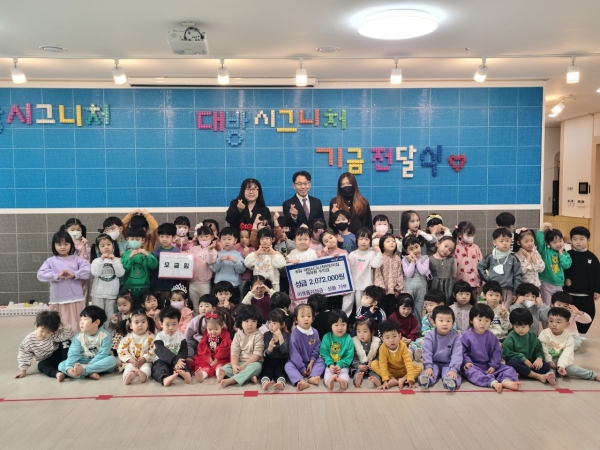 대방시그니처어린이집도 아이들이 모은 물건으로 진행한 바자회에서 모은 수익금 2,072,000원을 전달했다.