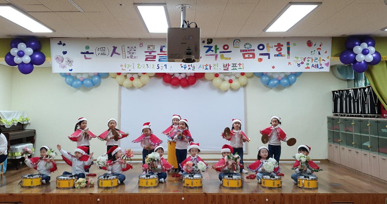 ▣ 유강유치원(원장 임은숙)은 12월 5일(화)부터 12월 7일(목)까지 사흘 동안 전체 유아가 참여하는‘유강 시화전 및 작은 음악회’를 개최하였다.