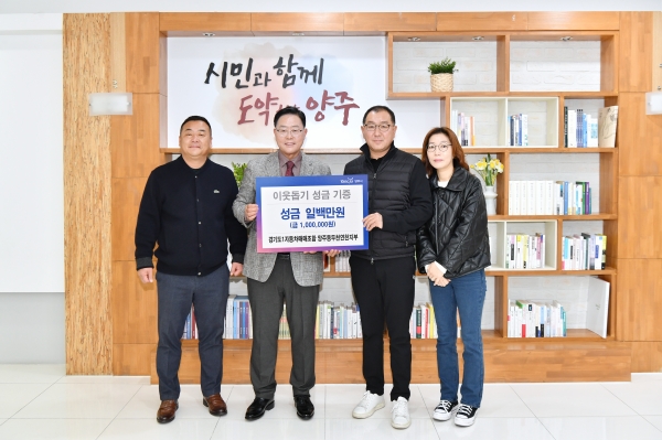 기탁식에는 강수현 양주시장을 비롯해 경기도1자동차매매사업조합 양주·동두천·연천지부 유재관 지부장과 임원진을 비롯해 다수가 참석했다.