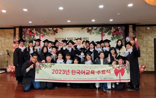 박우영 센터장은 “수료한 모든 이들을 축하하면서 앞으로도 양평군 가족센터가 다문화가정의 든든한 버팀목이 되도록 하겠다”며 “여러 나라의 결혼 이민자들 모두가 부담 없이 배움에 참여할 수 있도록 한국어 교육의 단계별 추진을 이어나가고 다문화가정의 자녀들이 이중언어 학습을 통해 정체성을 확립하고 자긍심을 형성할 수 있도록 적극 지원하겠다”고 전했다.