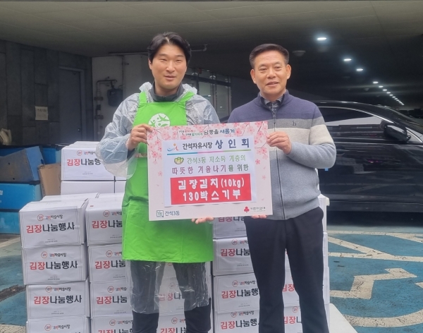 [금요저널] 인천 남동구 간석3동 행정복지센터는 최근 간석자유시장 상인회로부터 김장 김치 130박스를 전달받았다고 12일 밝혔다.