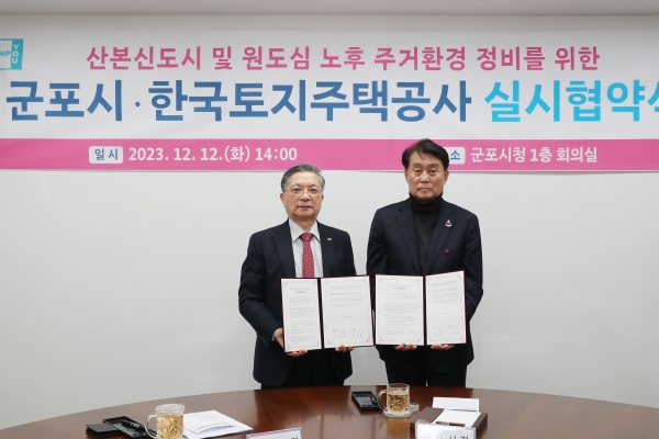 [금요저널] 군포시와 한국토지주택공사은 12월 12일 오후 2시 군포시청에서 산본신도시 및 원도심 노후주거환경 정비를 위한 실시협약을 체결했다.