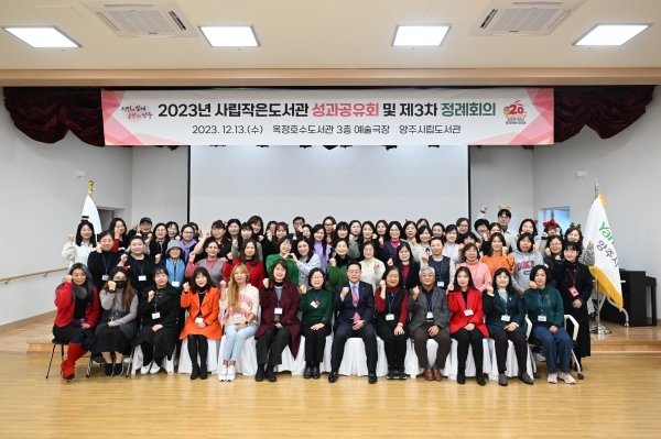 [금요저널] 양주시는 13일 오전 옥정호수도서관 3층 예술극장에서 ‘2023년 사립작은도서관 성과공유회 및 제3차 정례회의’를 개최했다고 밝혔다.